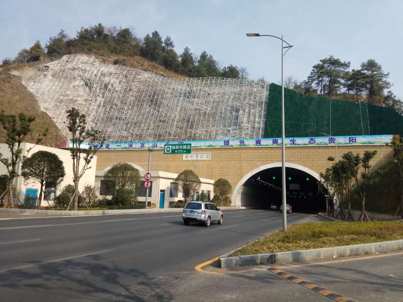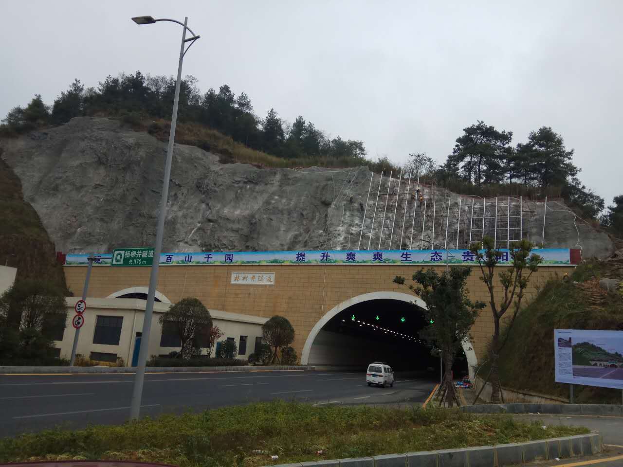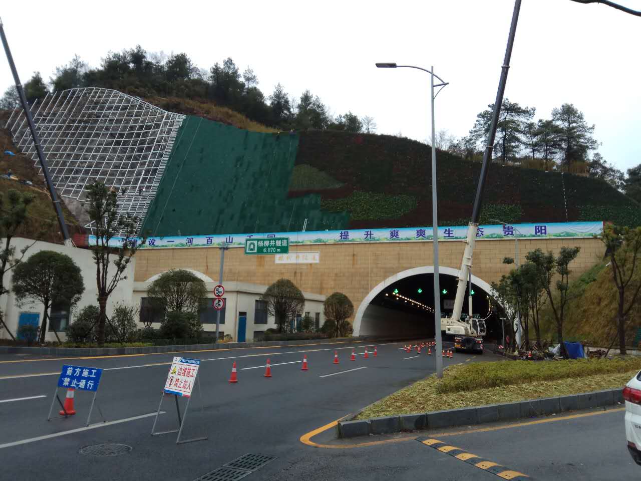 楊柳井隧道口上方邊坡綠化工程開工至今已歷時72天,工程接近尾聲;主體結構已完成,裝飾工程已完成3/4;預計該工程在本月下旬即可完工。
