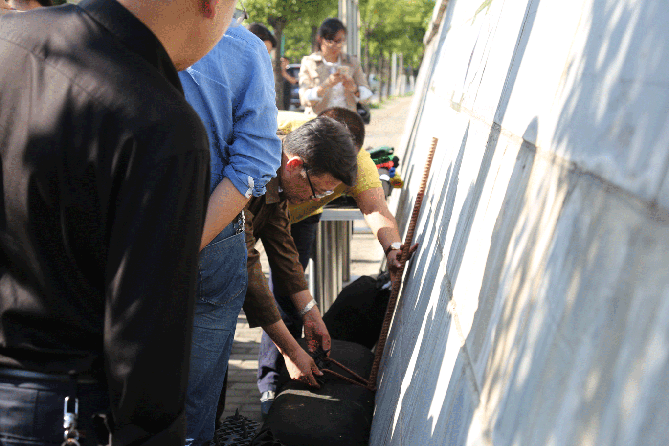 隨后來(lái)到楊柳井立交對(duì)我們的生態(tài)袋綠化工藝進(jìn)行了解。